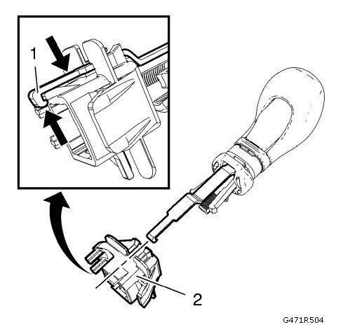 6. Slide blue transmission control lever retainer ring (1) downwards.