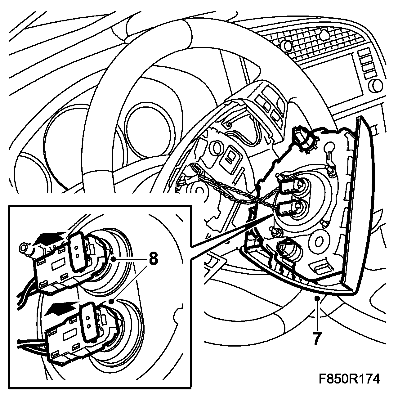 IMPORTANT: Exercise the greatest caution when the airbag is removed. There is a significant risk that the connector in the steering shaft control module will be broken.