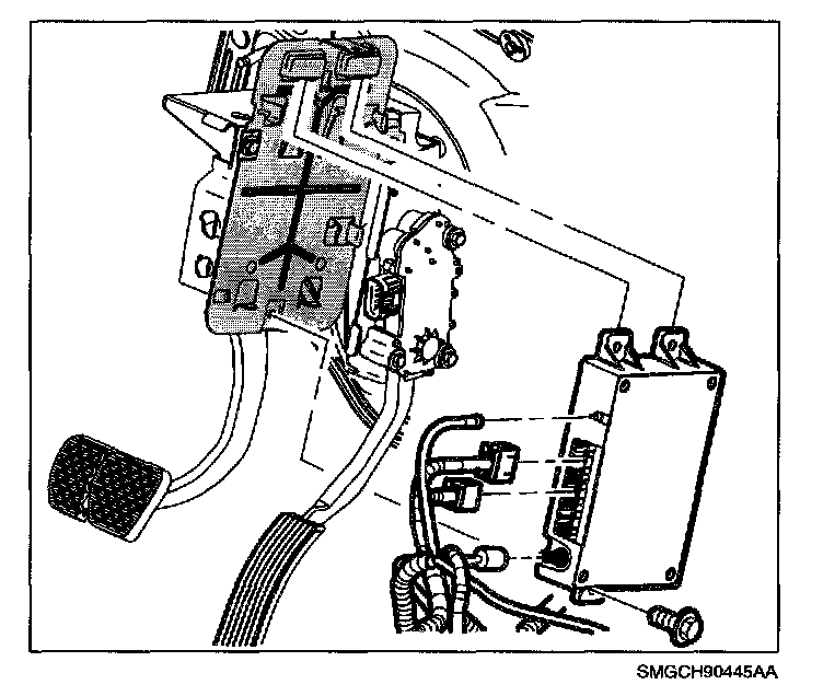 3. Tilt the module inboard to the center of the vehicle and pull down communication interface module (CIM).