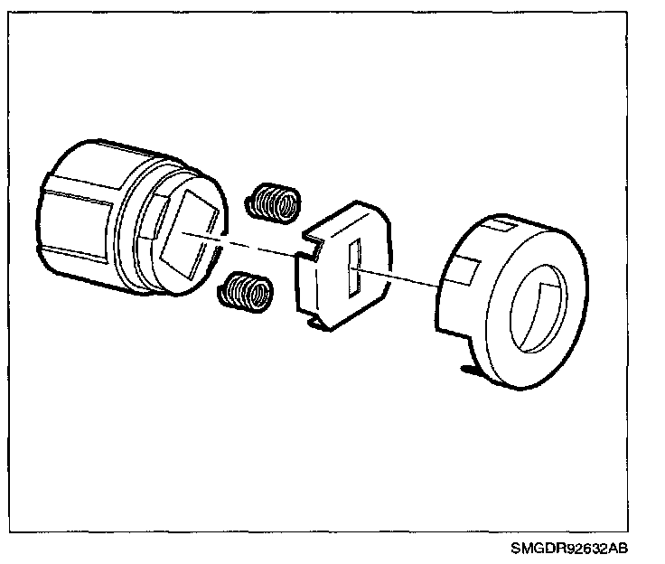 DISASSEMBLY1. Remove retainer clip at rear of lock cylinder and remove pawl.