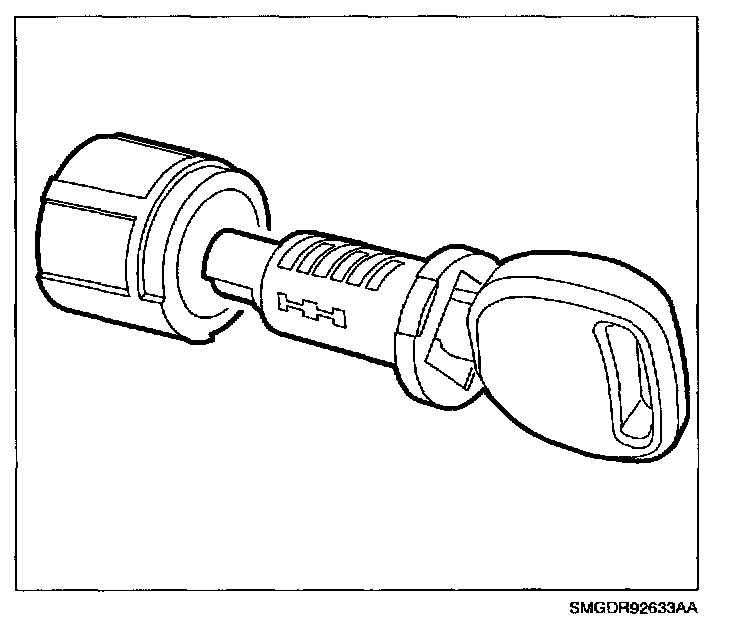 4. Insert key and rotate a quarter-turn. Slide cylinder from housing