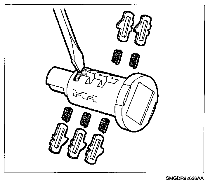 5. Push tumblers out of lock cylinder using a thin blade screwdriver.