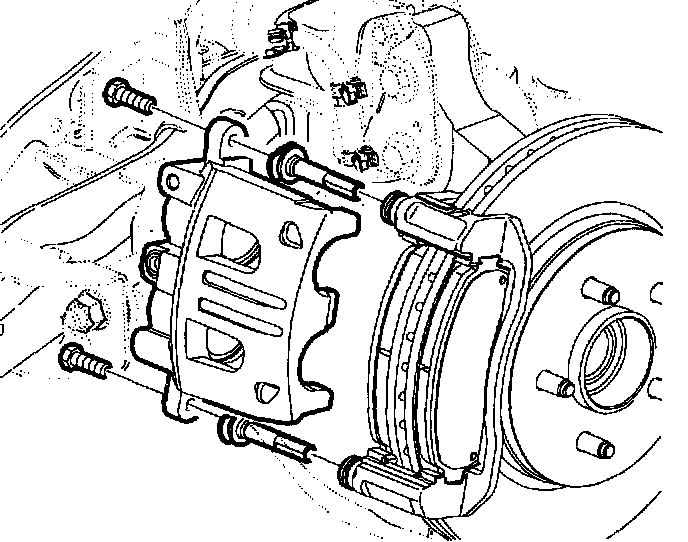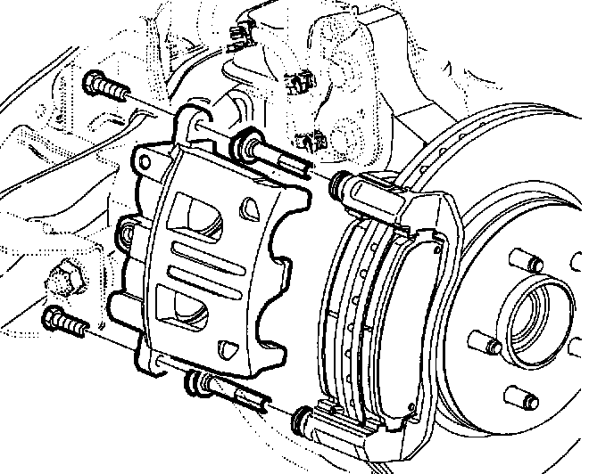 6. Remove guide pin assemblies from caliper bracket.