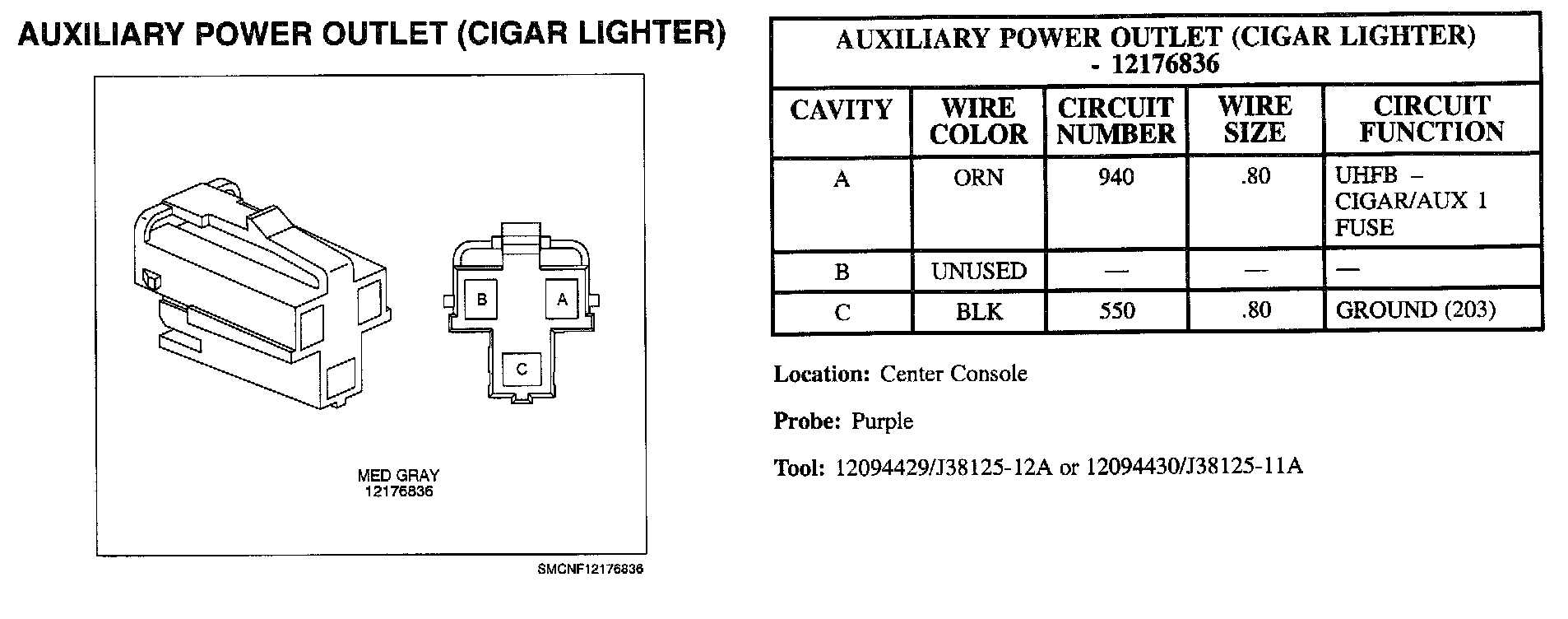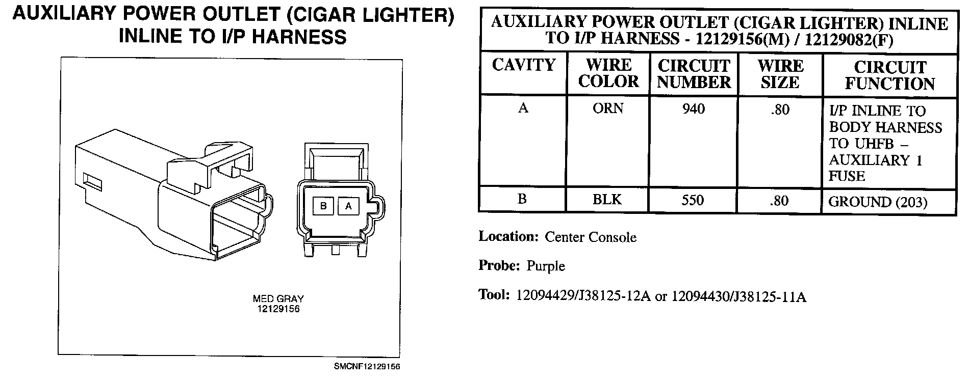 Auxiliary Power Outlet (Cigar Lighter) Inline To I/P Harness: