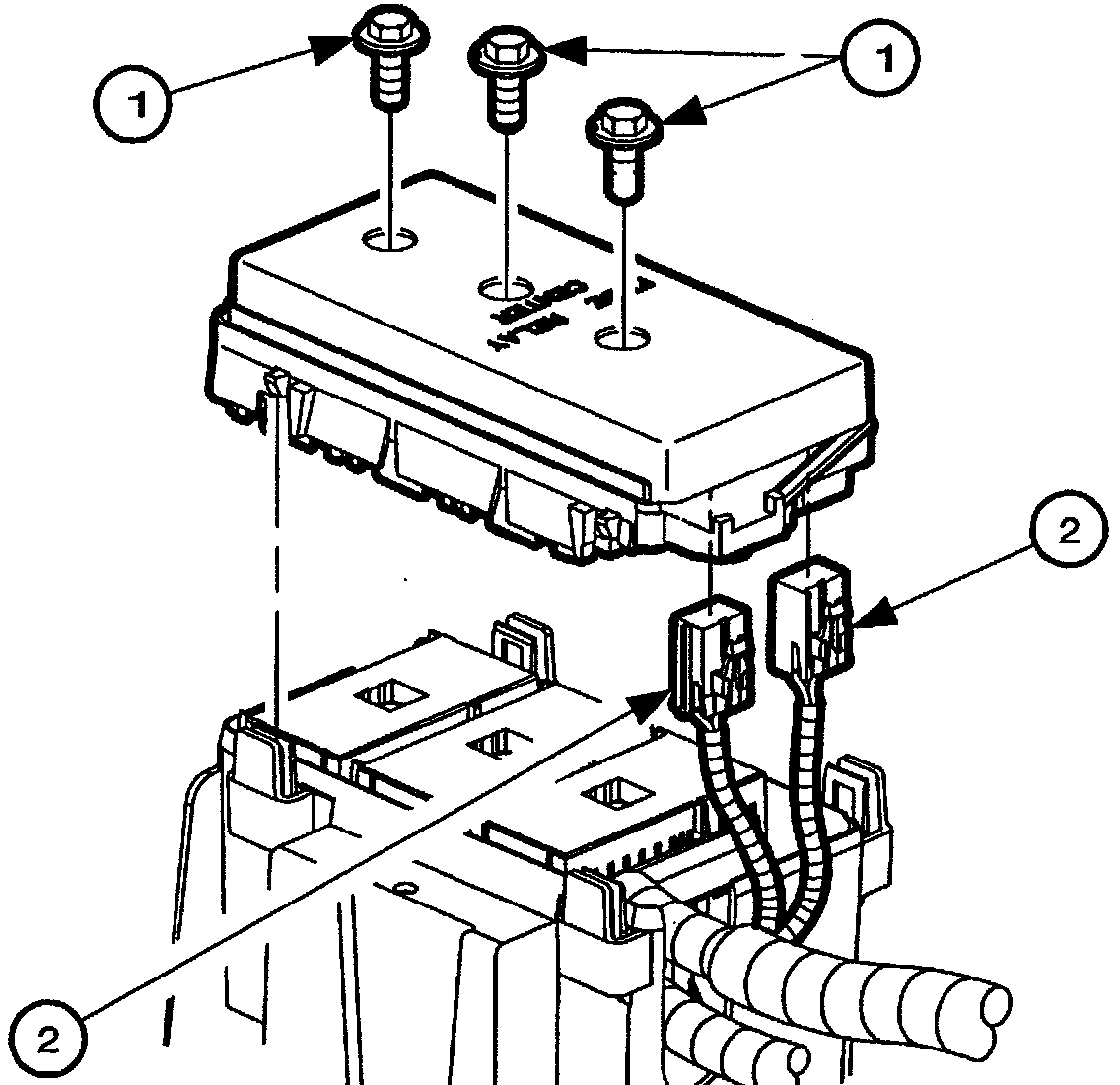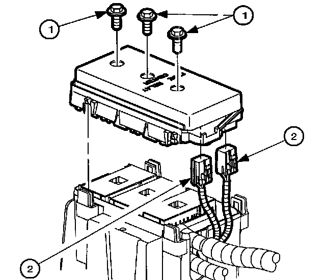 60. Install Under Hood Fuse Block (UHFB) and battery tray.