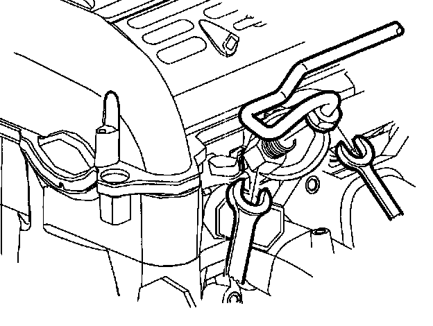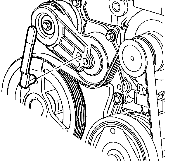 53. Install Accessory Belt Tensioner Unloader J44811 tool onto tensioner.