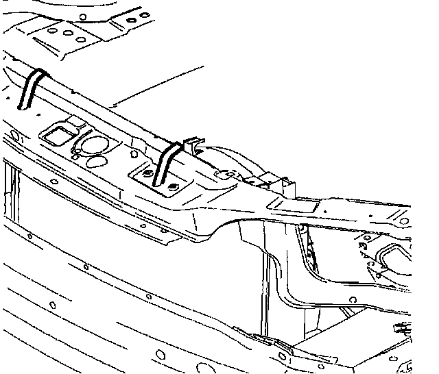 45. Using long lie straps, secure radiator/condenser fan assembly to radiator support assembly.