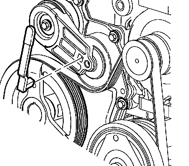 36. Install Accessory Drive Belt tool J39914 onto tensioner and unload spring tension from tensioner while positioning belt.