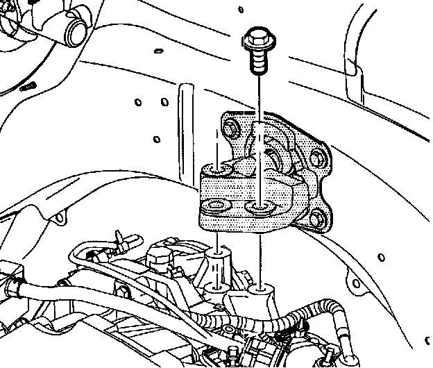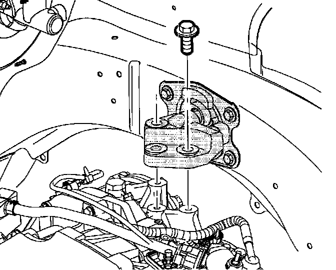IMPORTANT: A piece of hardwood should be used between transaxle case and cradle assembly. This wood will support transaxle when LH mount bolts are removed.