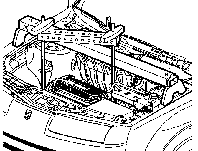 8. Install Engine Three-Bar Fixture SA9105E set up for SUV application. AISLE use Engine Support Adapter J45122.
