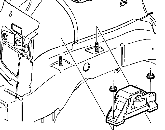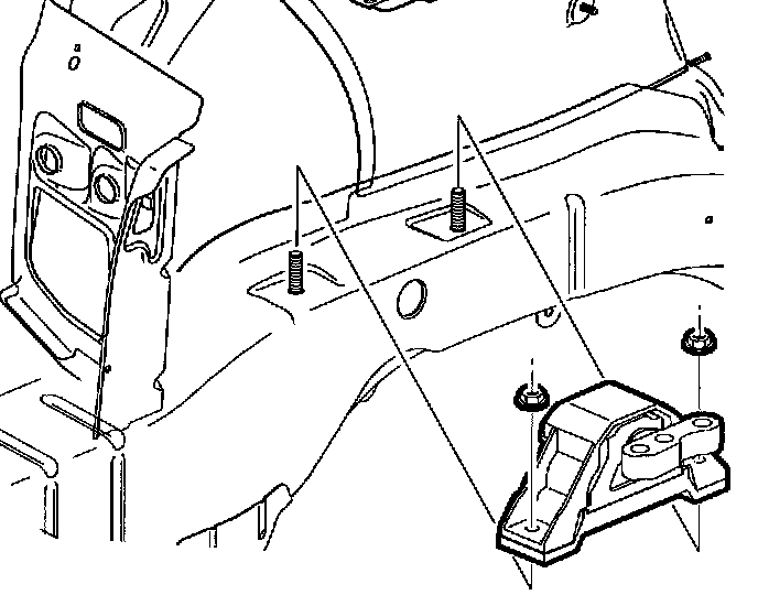 17. Install right hand engine mount over body side rail studs.