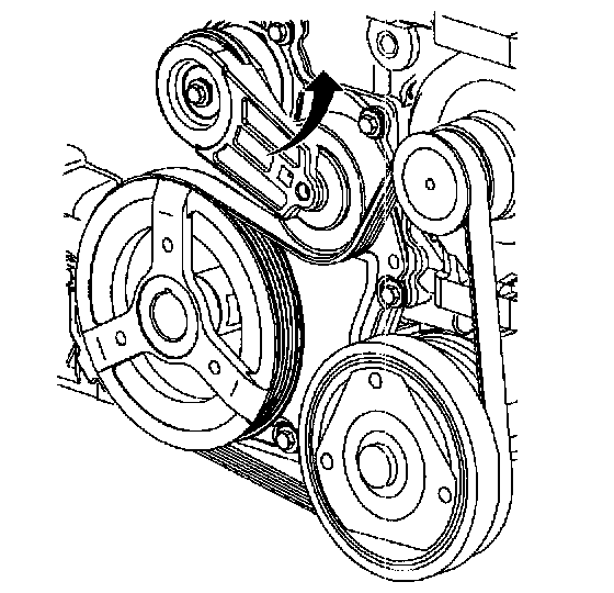 10. Route belt around alternator and A/C compressor. Install J39914 Accessory Drive Belt tool onto tensioner and unload spring tension from tensioner while positioning belt.