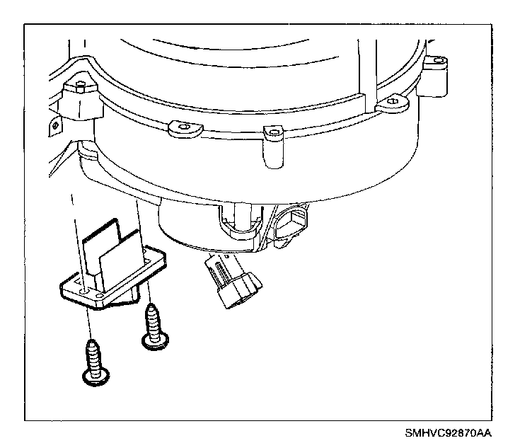 1. Install blower motor resistor to HVAC case with screws.