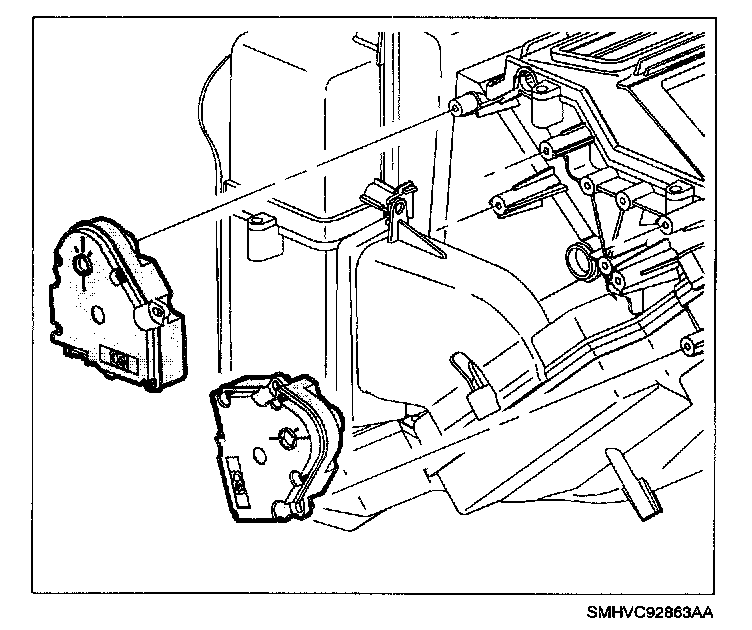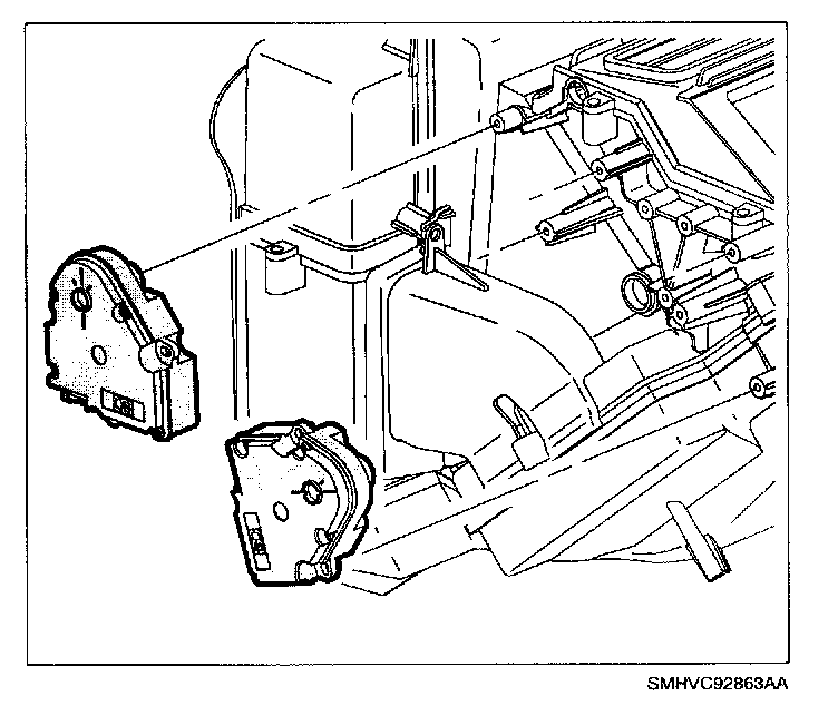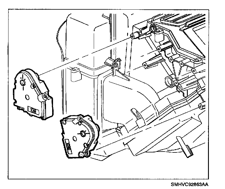 8. Install panel, defrost and floor mode actuators (if blower case assembly was replaced, mode actuators do not need to be installed).