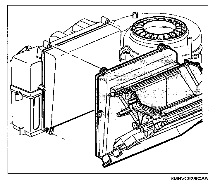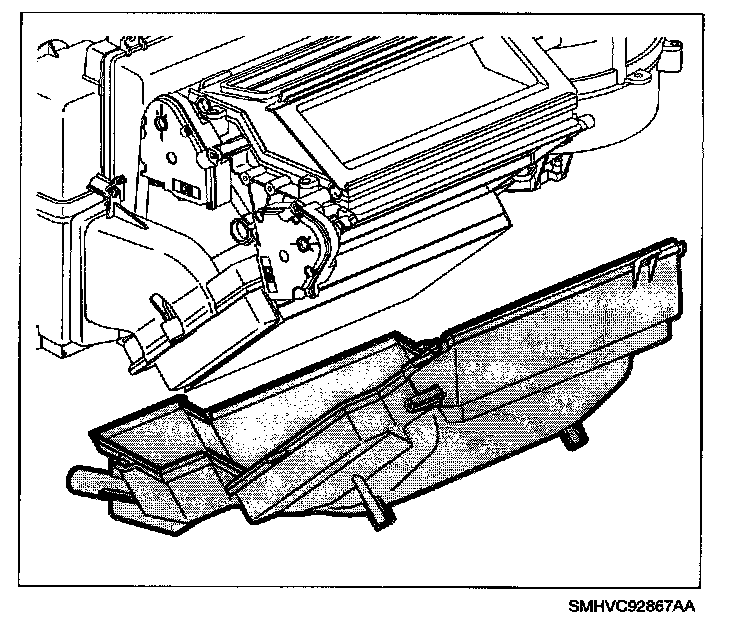 2. Remove evaporator (spraying perimeter of heater core seal with a soap and water mixture will ease removal).