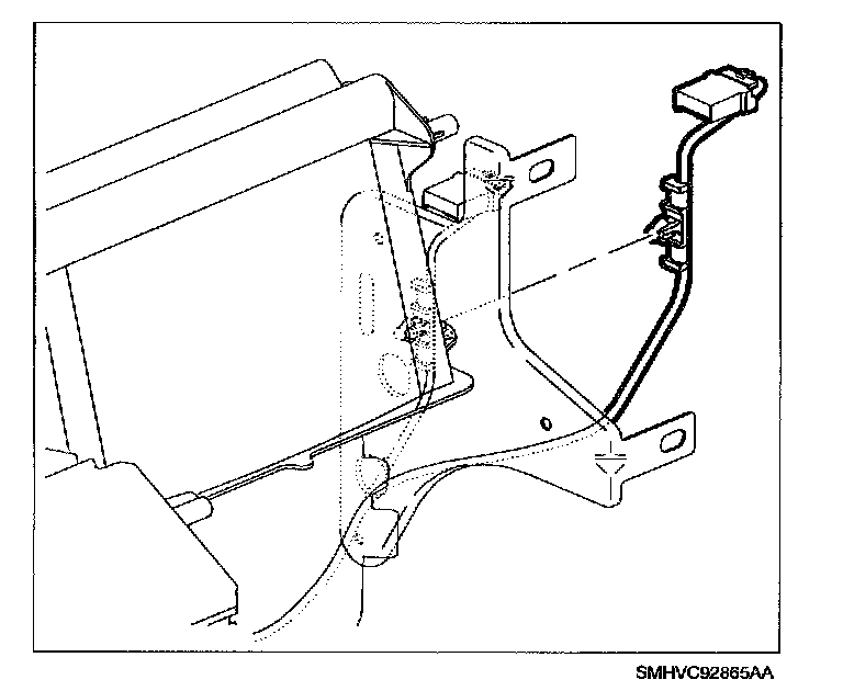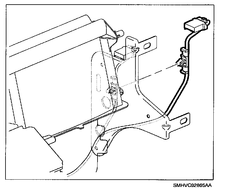 2. Route HVAC module harness thru end bracket bottom hole and install bracket.