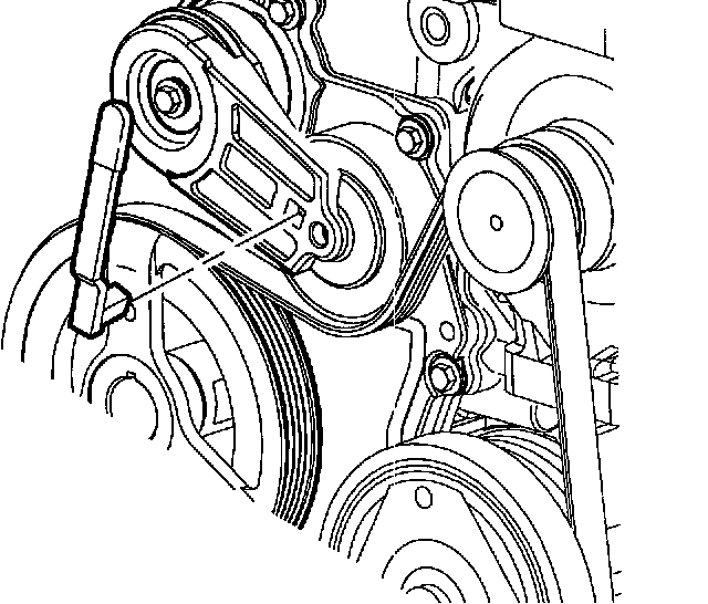 3. Install J-39914 Accessory Drive Belt Tool onto tensioner and unload spring tension from tensioner while positioning the belt.