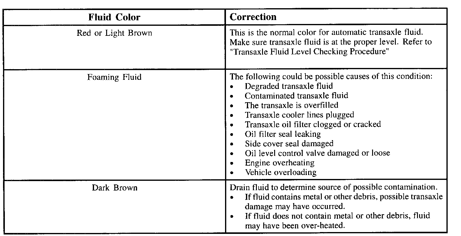 1. Inspect the condition of the ATF in order to make sure that the following signs are NOT present:
