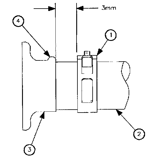8. Slide clamp (1) to within 3 mm (0.12 inch) of the hose end.