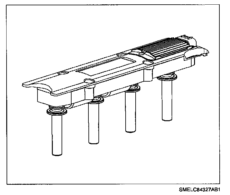 The EI module, ignition coil housing with coil packs and spark plug boots are bolted as an assembly to the top of the cam cover. The Electronic Ignition (EI) module charges and discharges the coils based on ECM control. The ECM uses a high control signal of near 5 volts to charge up the coil and a low control signal of near 0 volts to discharge the coil. If the coil is charged and the control signal is low, the coil will fire through its secondary towers. The ECM controls spark timing and dwell (spark On-time) under all engine running conditions.