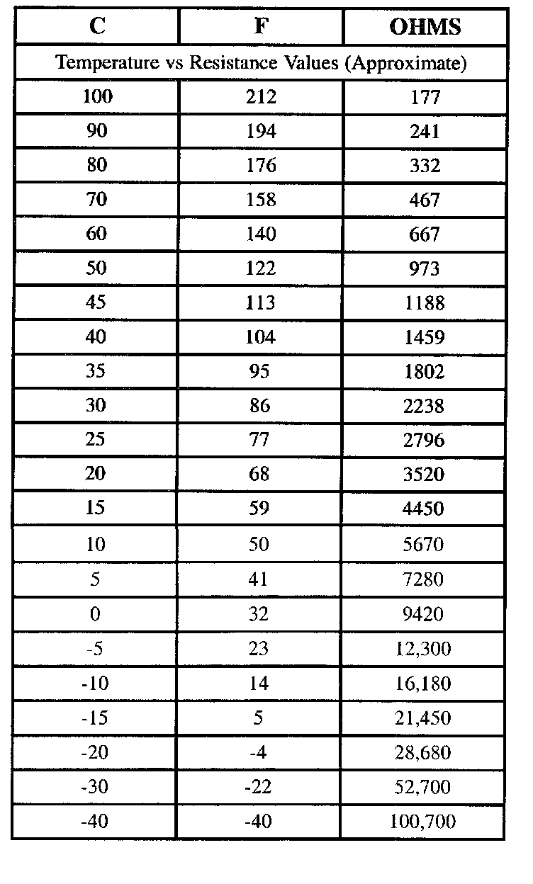 The ECT sensor is located in a coolant passage in the side of the cylinder head near the thermostat housing. The ECT sensor is a two-wire thermistor type sensor that varies resistance according to changes in engine coolant temperature. The ECM supplies a five volt reference through a resistor to the sensor, which is connected to ground. When the sensor is cold it has high resistance (high signal voltage at ECM). As the sensor temperature increases, its resistance decreases (lower signal voltage at ECM). The ECM uses the signal voltage to determine engine coolant temperature.
