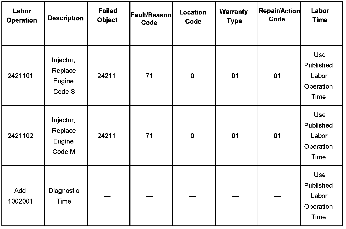 For vehicles repaired under warranty, use the table.