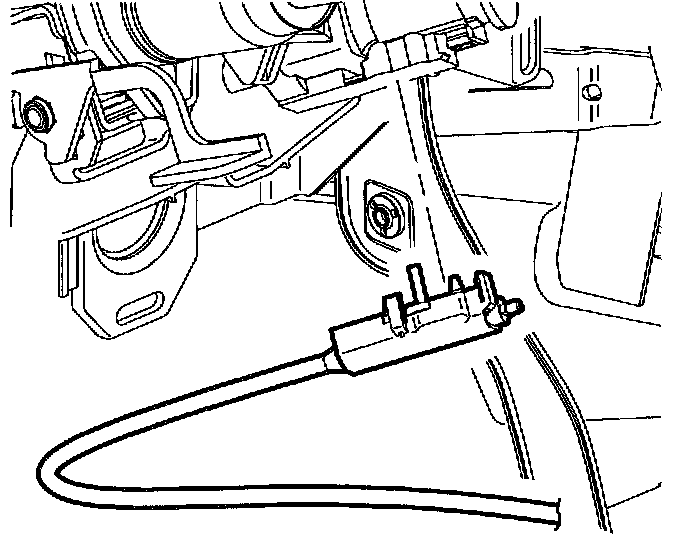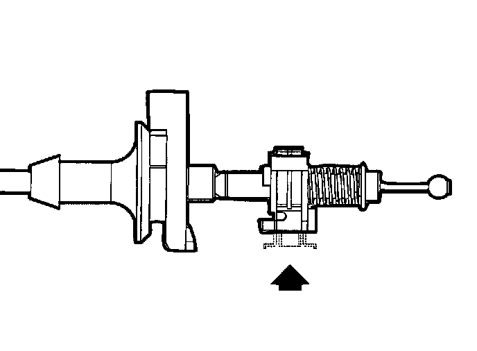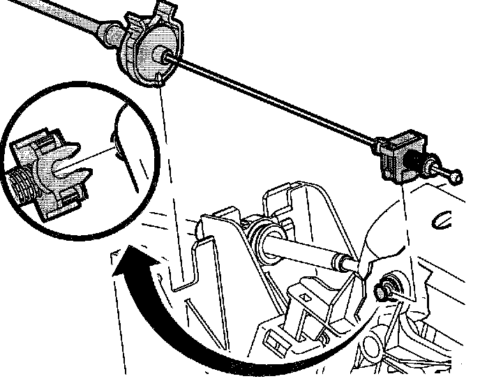 7. Disconnect end terminal of park lock cable assembly from control assembly by pulling cable fitting rearward.
