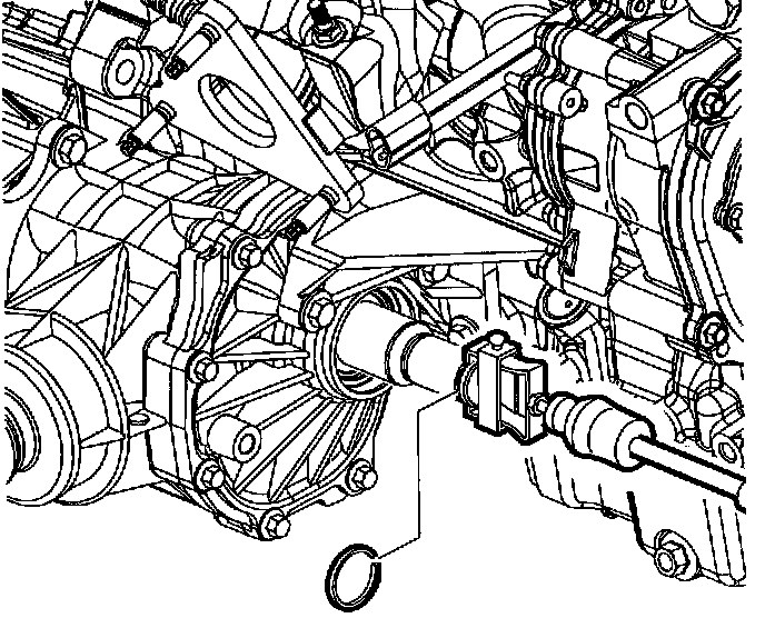 6. Compress CV joint and disengage propshaft from PTU and secure with wire.