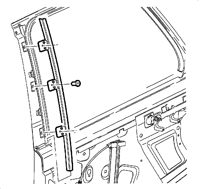 1. Remove the rear door window run channel. Refer to Rear Side Door Window Channel Replacement (Rear Side Door Window Channel Replacement).