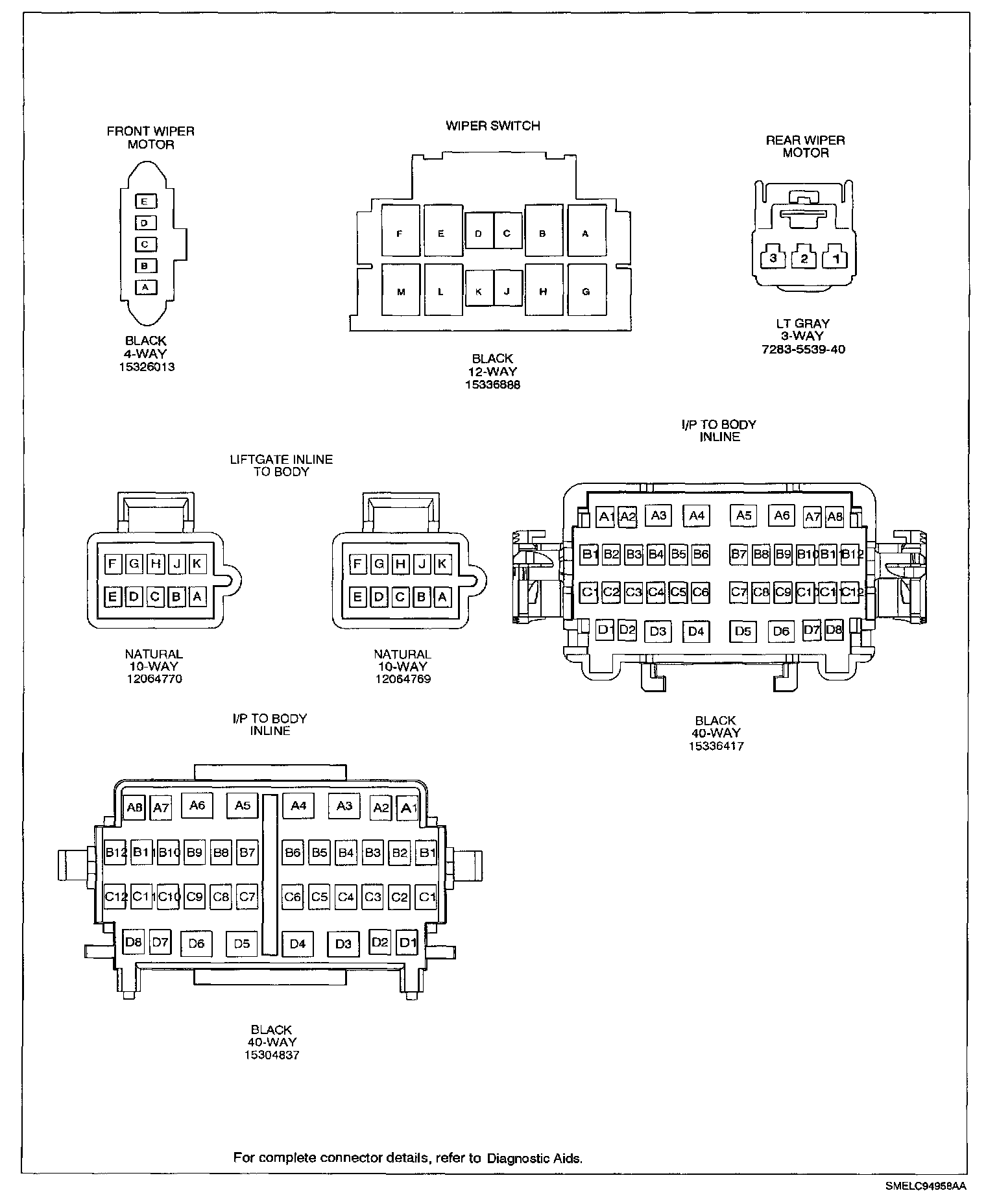 Wiper/Washer Connector Face Views: