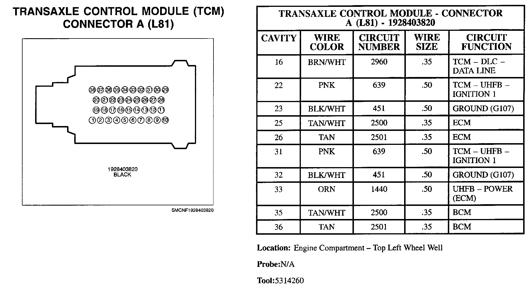 Transaxle Control Module (TCM) Connector A (L81):