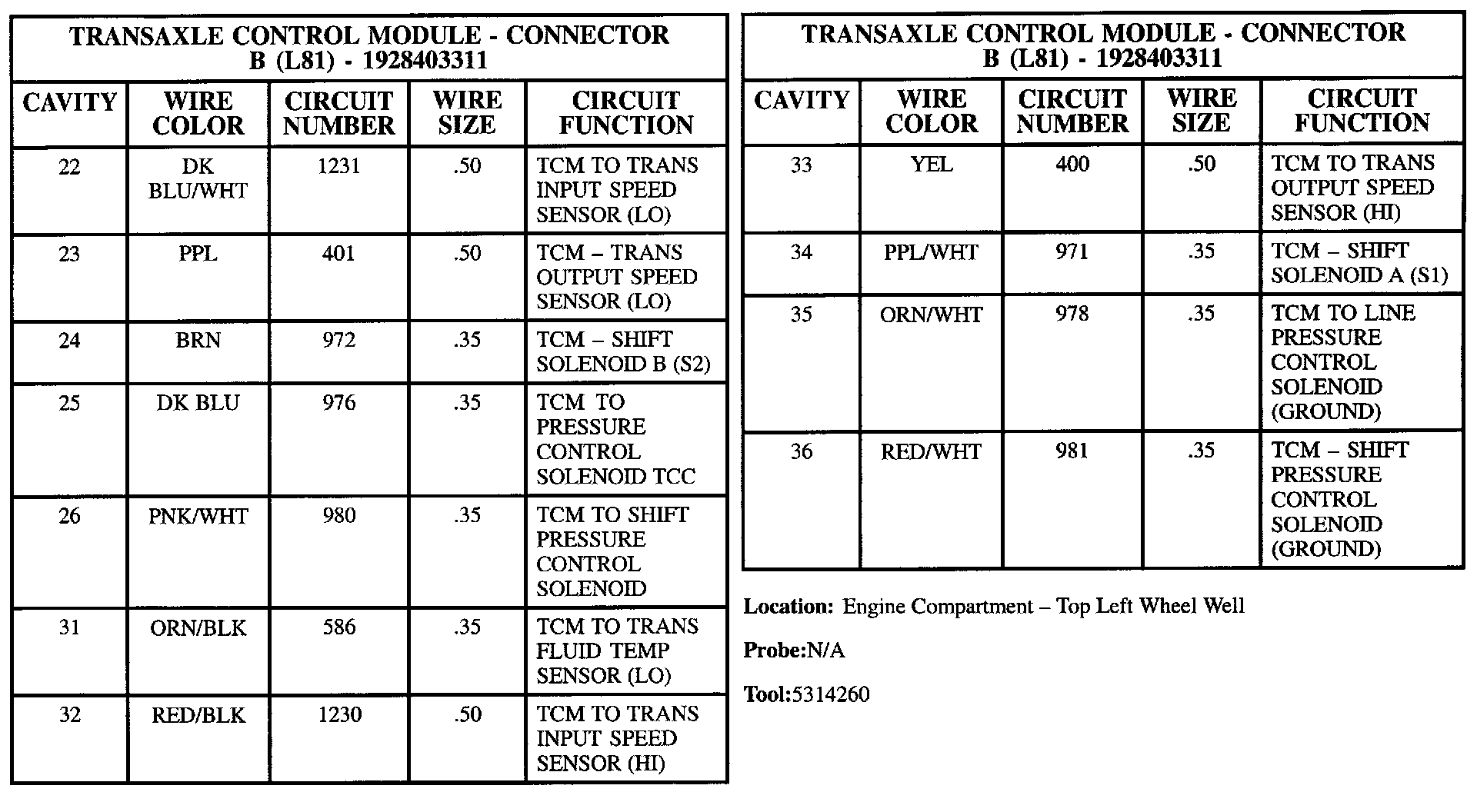 Transaxle Control Module (TCM) Connector B (L81) Part 1: