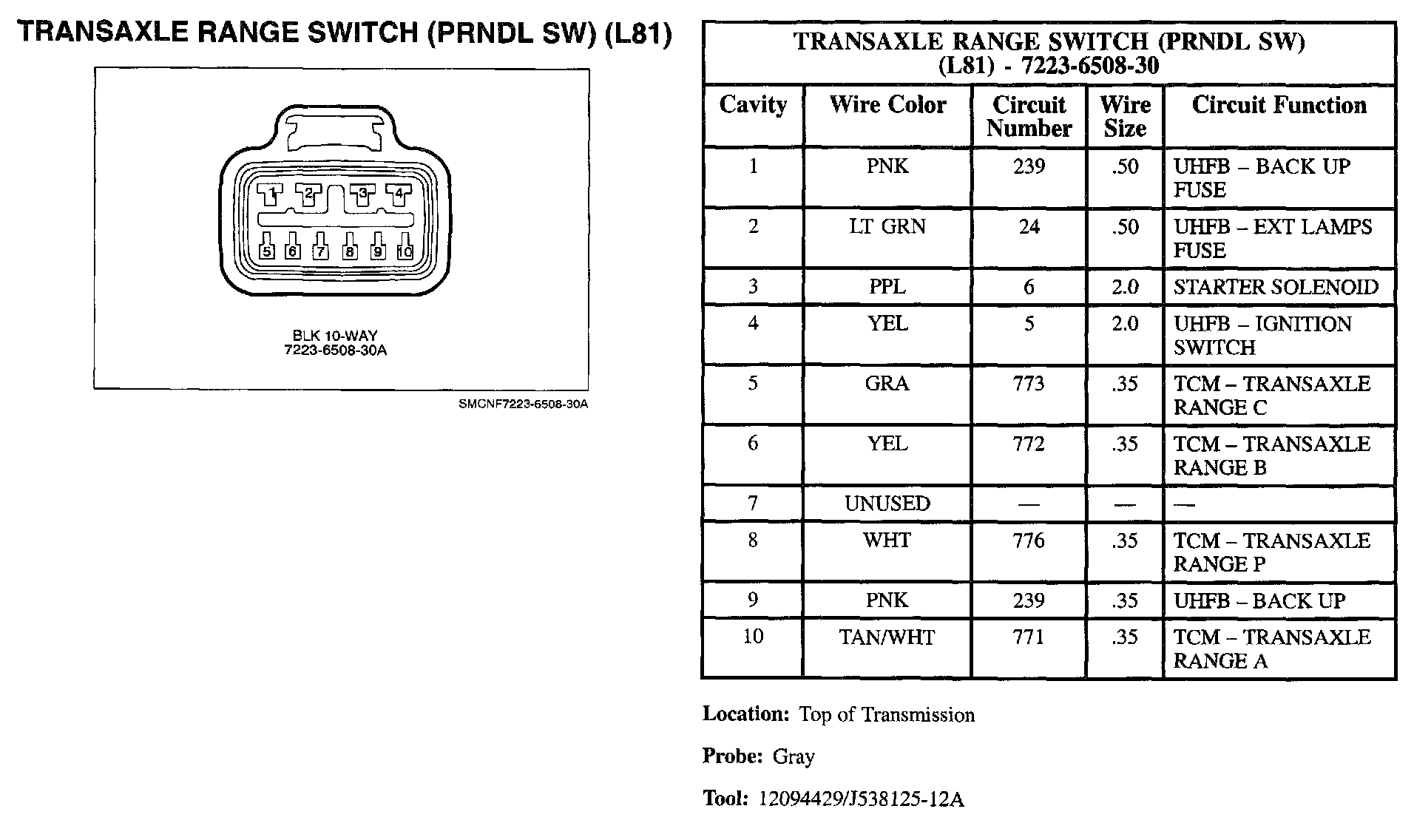 Transaxle Range Switch (PRNDL SW) (L81):