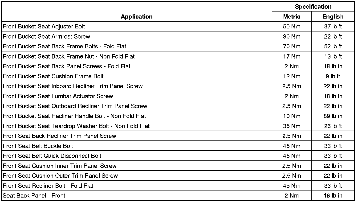 Fastener Tightening Specifications