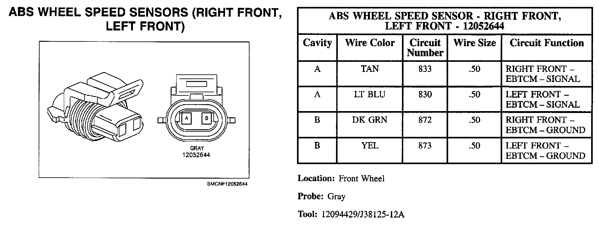 ABS Wheel Speed Sensors (Right Front, Left Front):