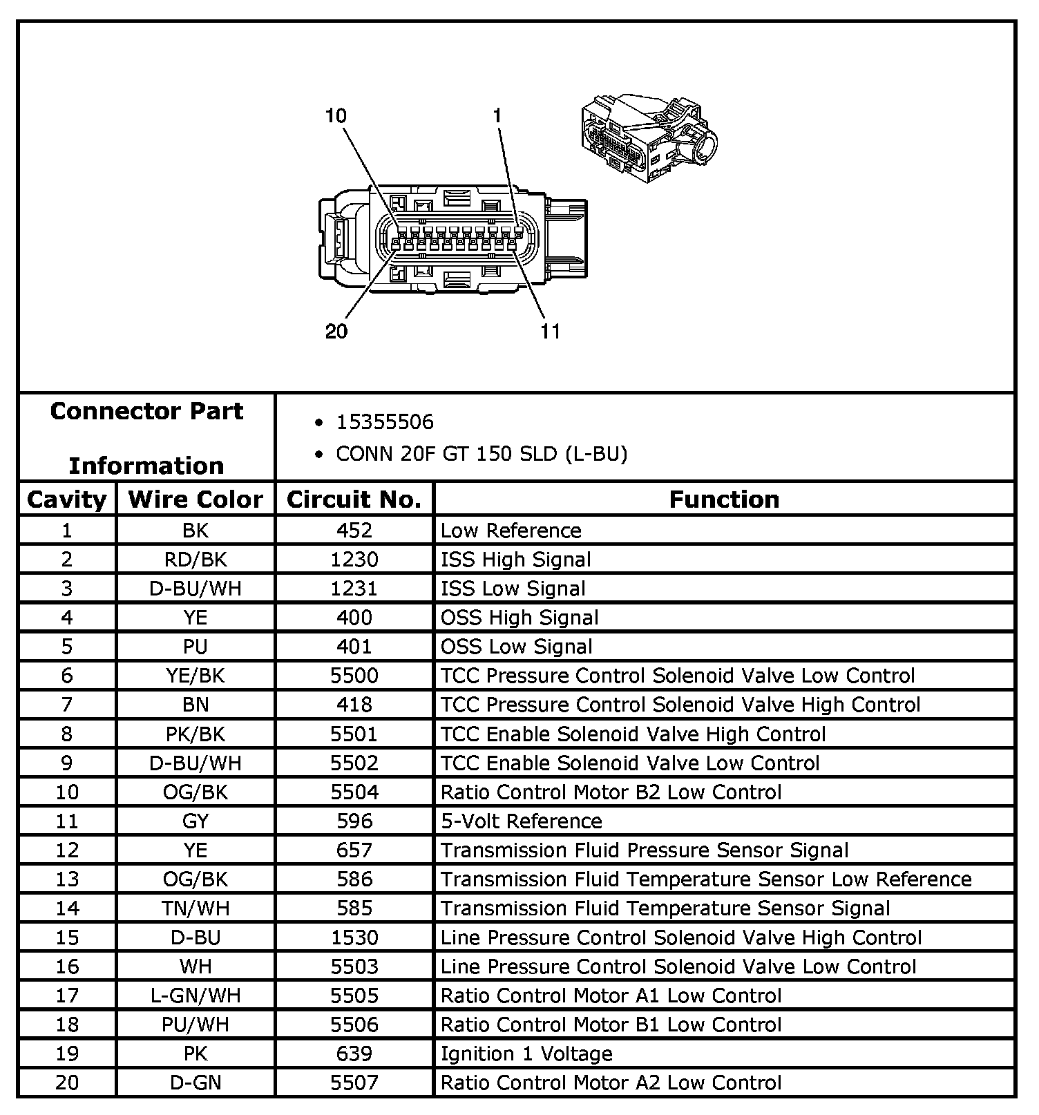 Transmission Inline Harness 20-Way Connector, Engine Side