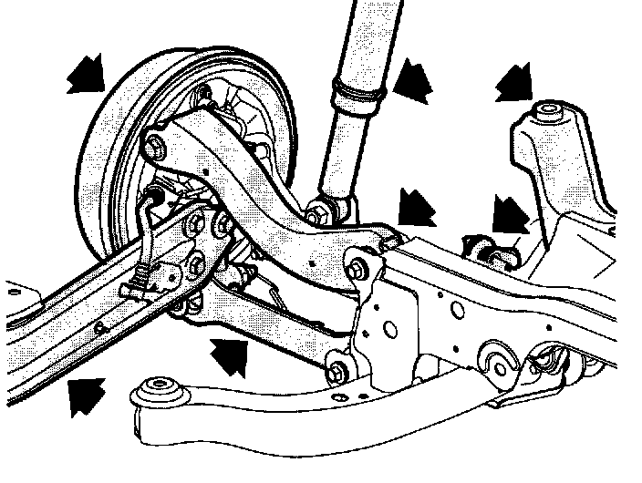9. Check strut assemblies for oil leaks, looseness, wear, binding or dents.