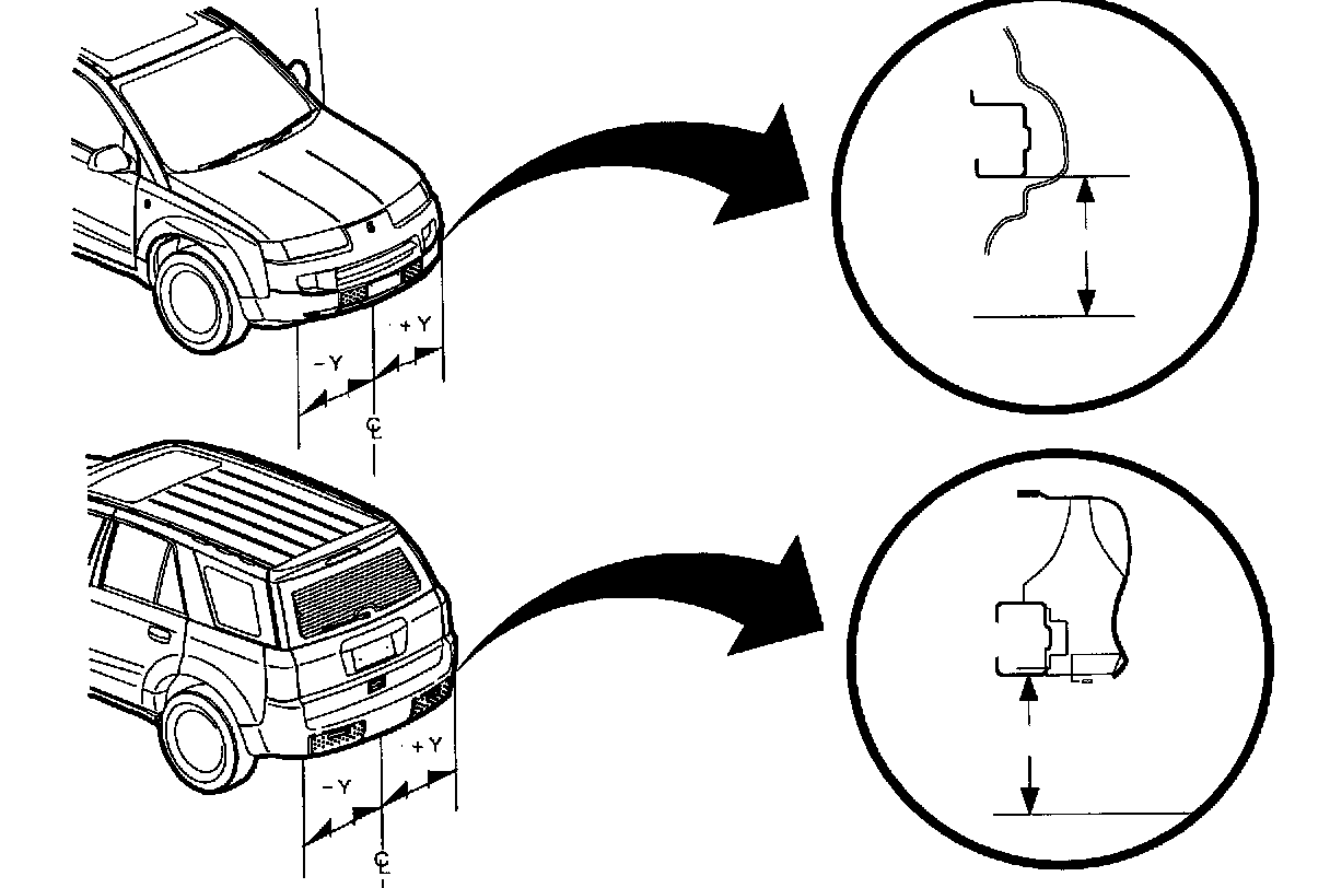 Locating point -Y and +Y is distance from the center line of vehicle according to the following chart.
