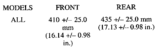 BUMPER HEIGHTSIMPORTANT: When measuring alignment angles, it is critical that the vehicle bumper height be correct. Measure and adjust bumper height according to the following procedure before performing alignment.