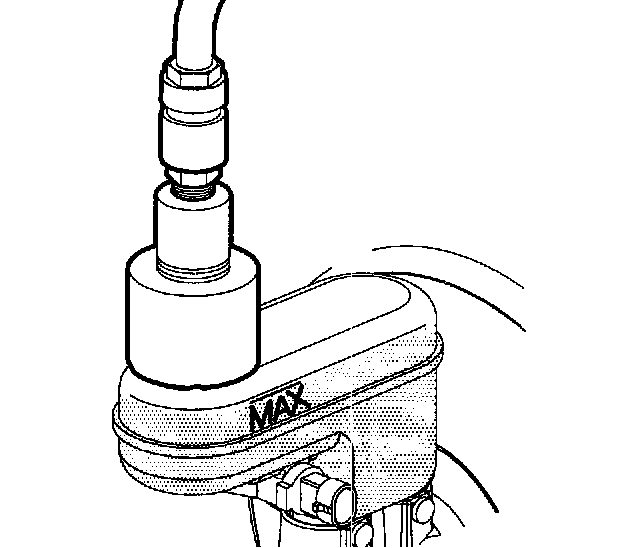 4. Install Brake Bleeder Adapter J44894 (or equivalent) to the brake fluid reservoir.
