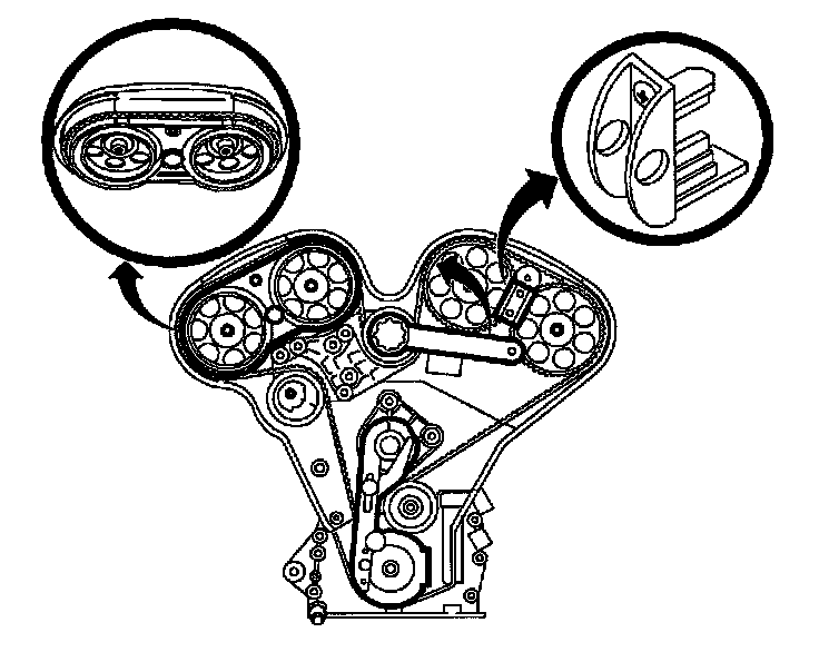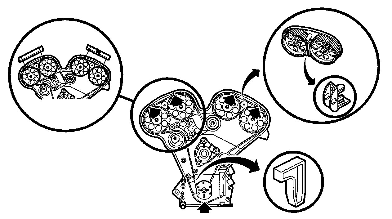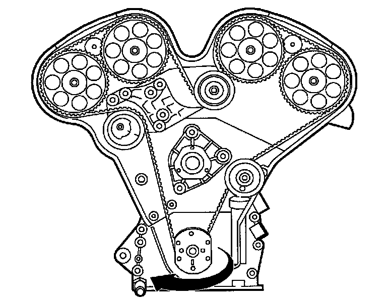 Important: If the TDC is passed, do not rotate the crankshaft counterclockwise. This will not allow proper slack to be taken up between the timing belt tensioner and crankshaft sprocket. To correct, rotate the crankshaft two additional turns.