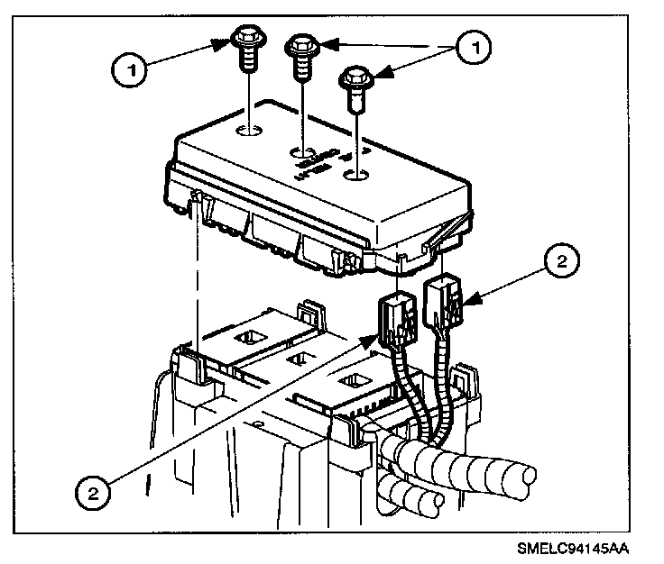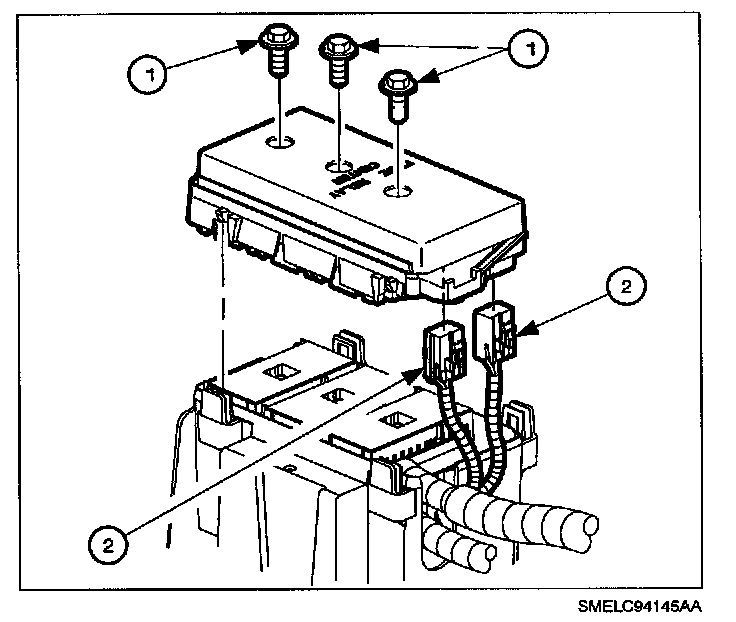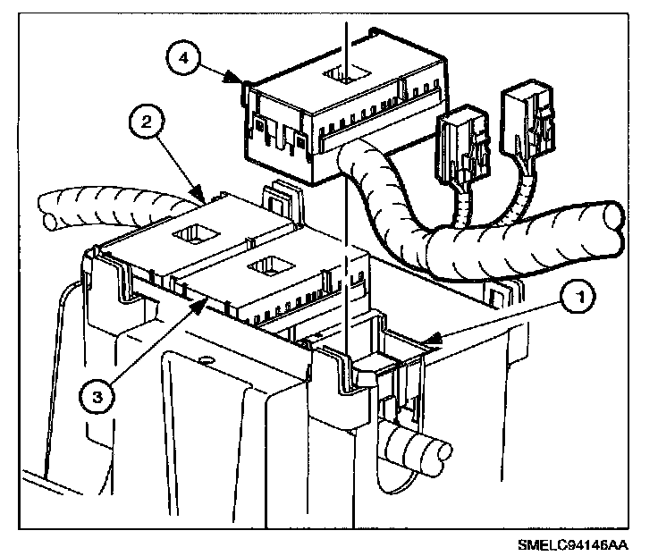 IMPORTANT: All 3-fuse block 68-way connectors are held into place to the fuse block case by a push pin design.