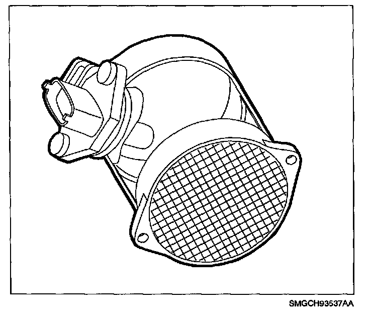 The IAT sensor is an integral part of the Mass Airflow (MAF) sensor. The IAT sensor is a two wire thermistor type sensor that varies resistance according to changes in air induction temperature. The ECM supplies a five volt reference through a resistor to the sensor, which is connected to ground. When the sensor is cold it has high resistance (high signal voltage at ECM). As the sensor temperature increases, its resistance decreases (low signal voltage at ECM). The ECM uses the signal voltage to determine intake air temperature.