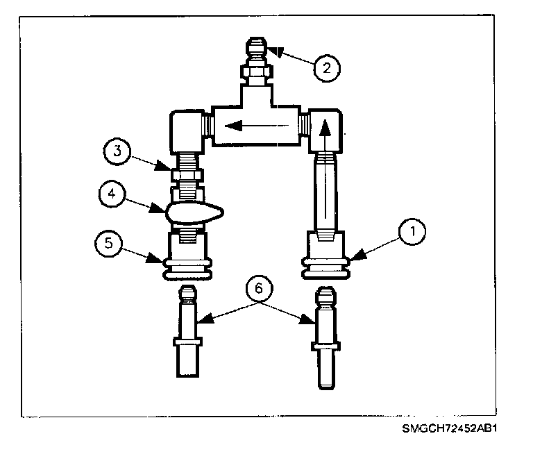 It is connected with inlet side to fuel feed, outlet side to fuel return (or drain), and gauge port to pressure gauge or cap. The ON/OFF control valve provides a means to control fuel flow for pressure and leakdown testing.