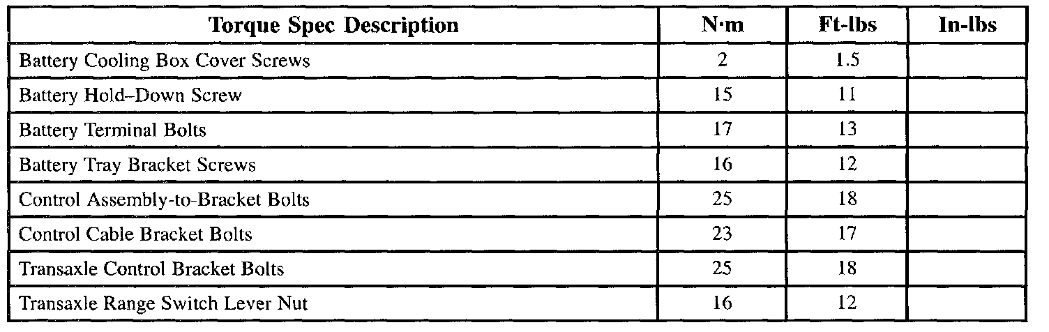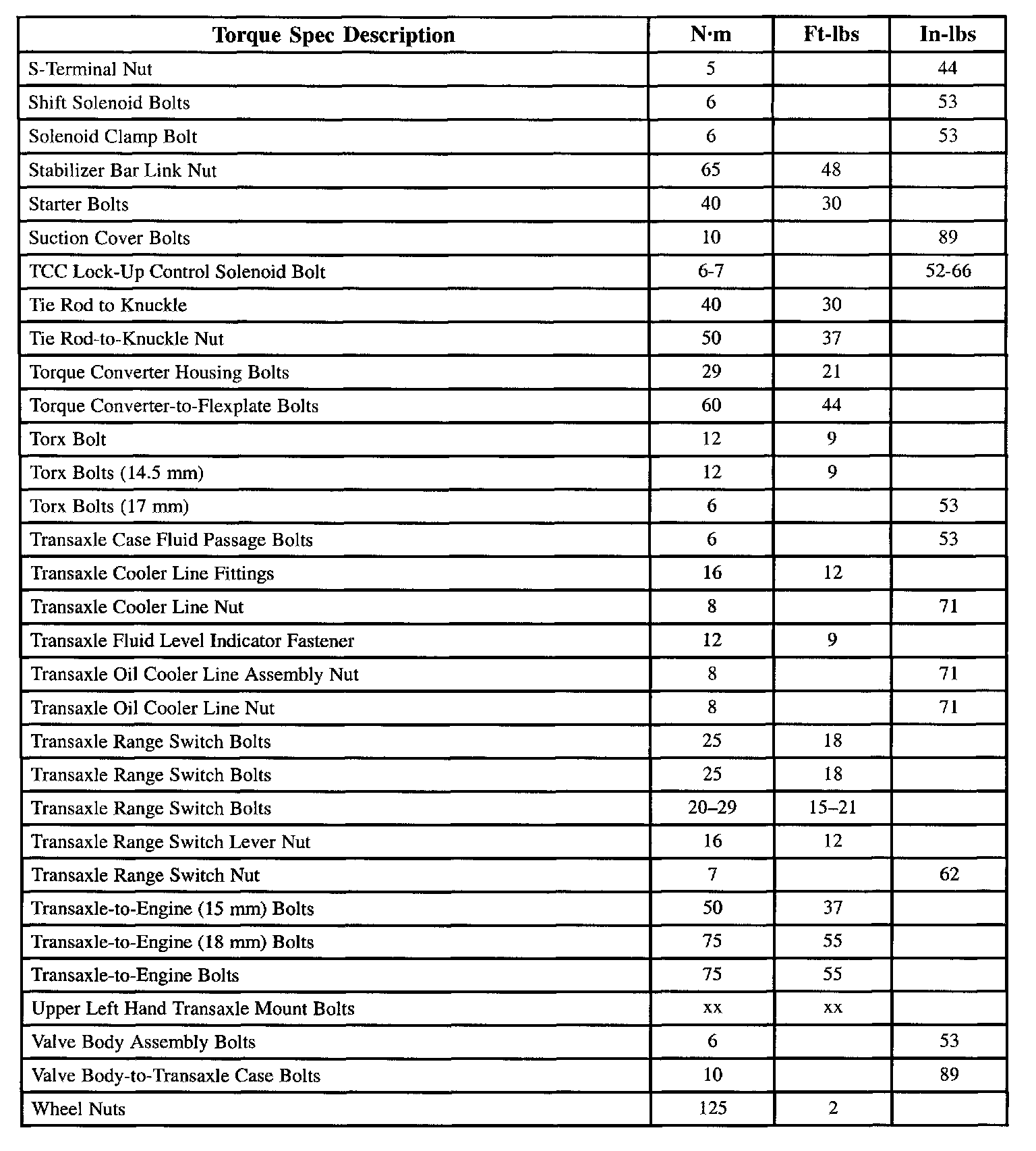 TRANSAXLE TORQUE CHARTS