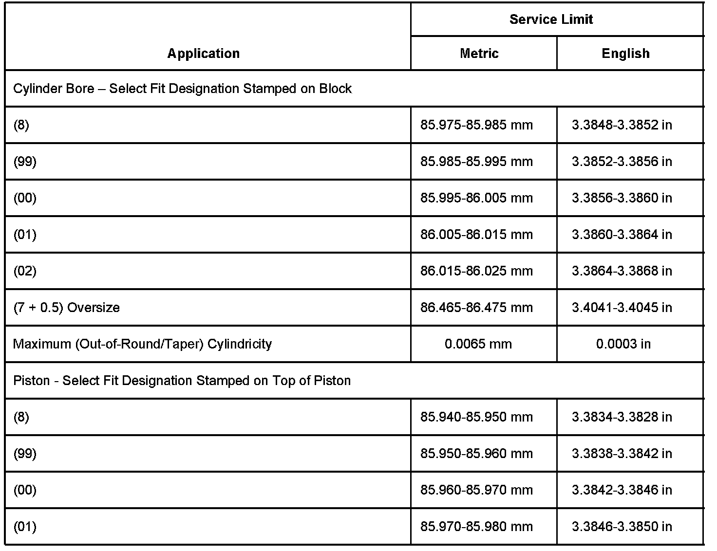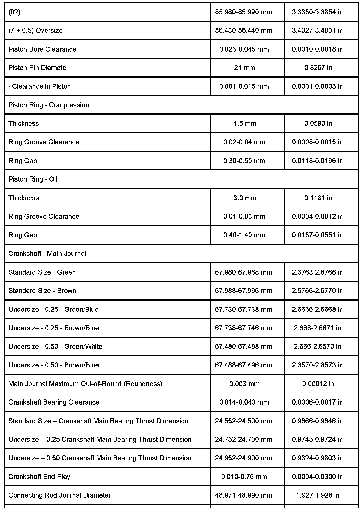 Engine Block Clearance Specifications