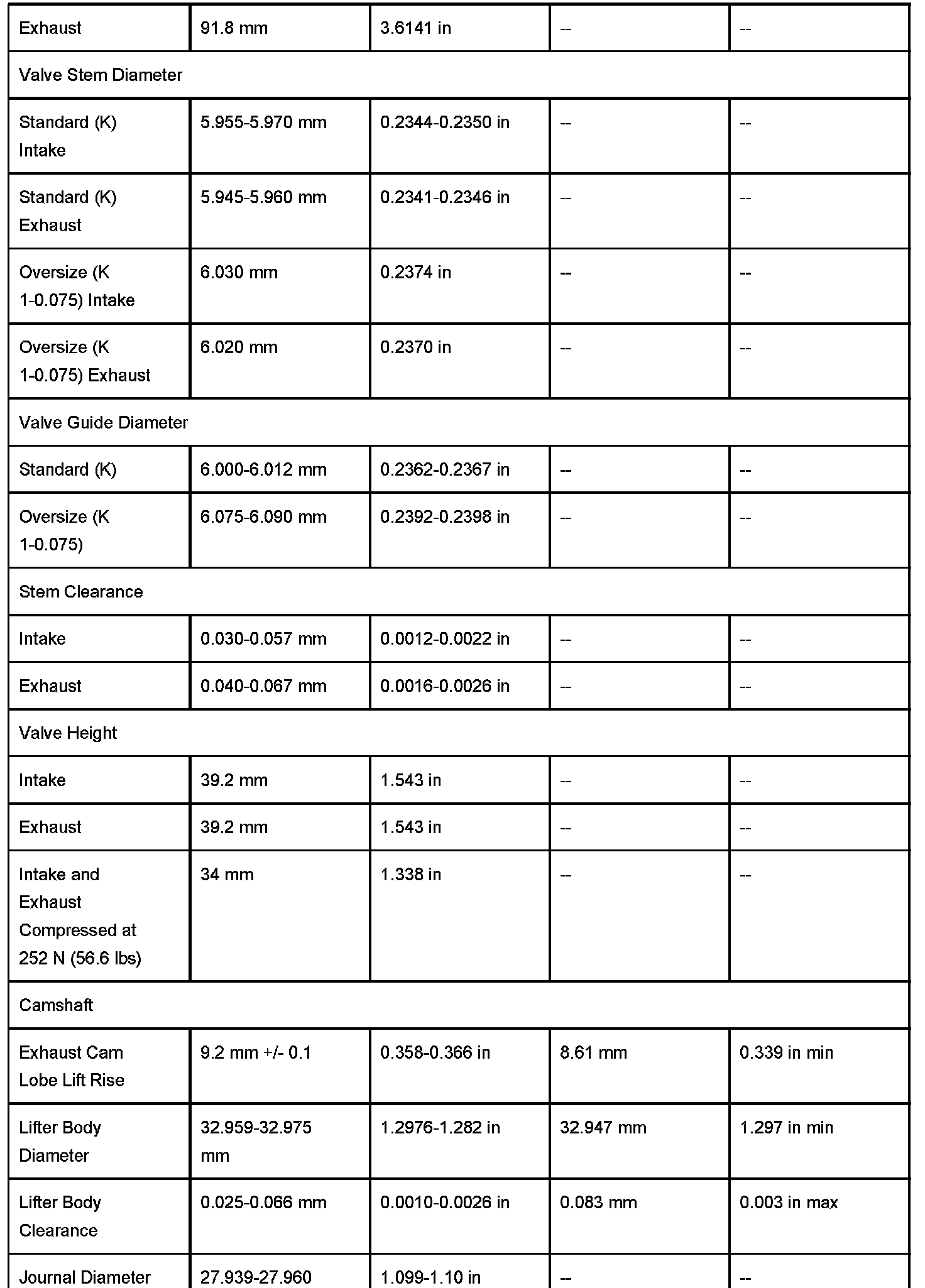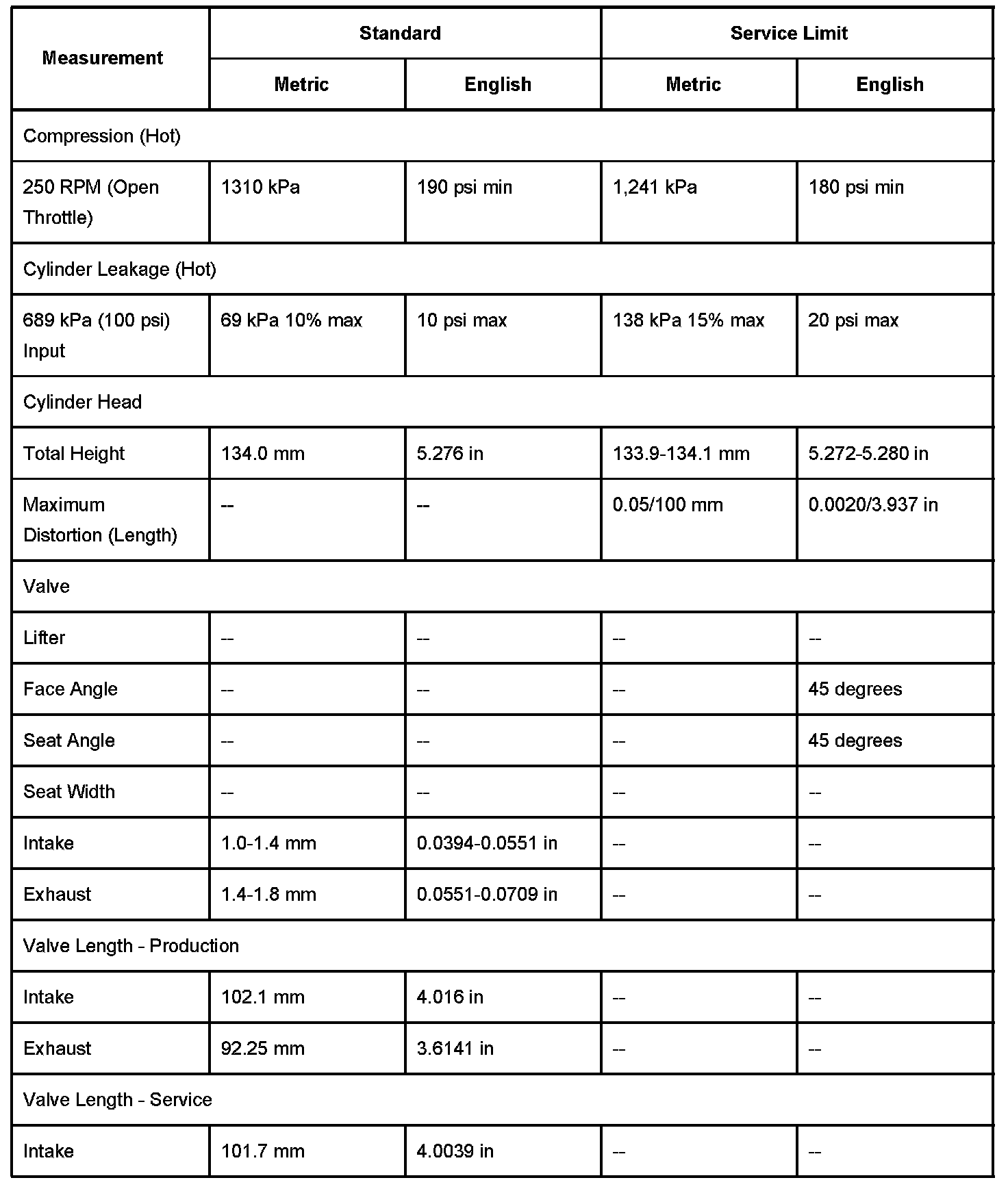 Cylinder Head Specifications