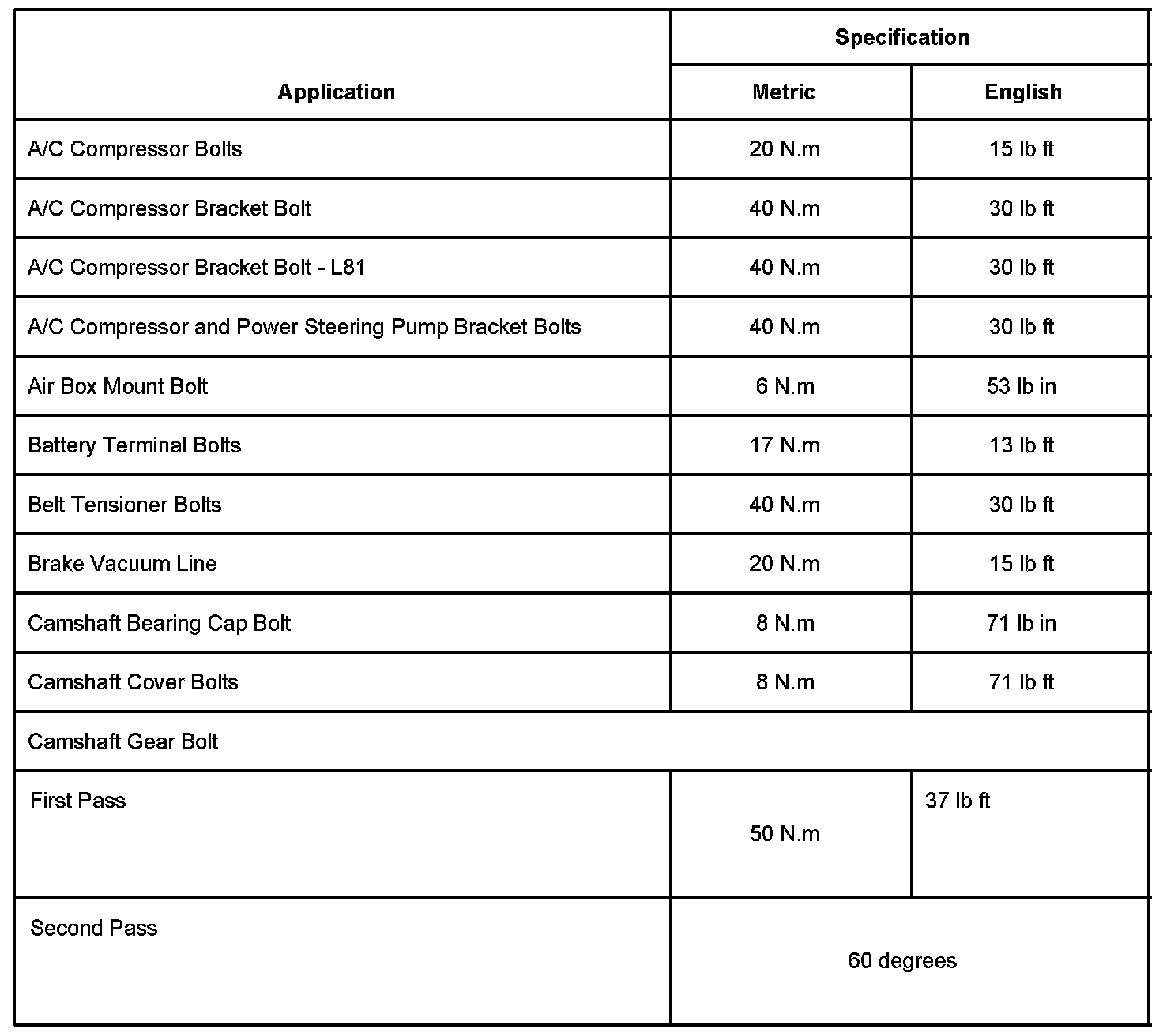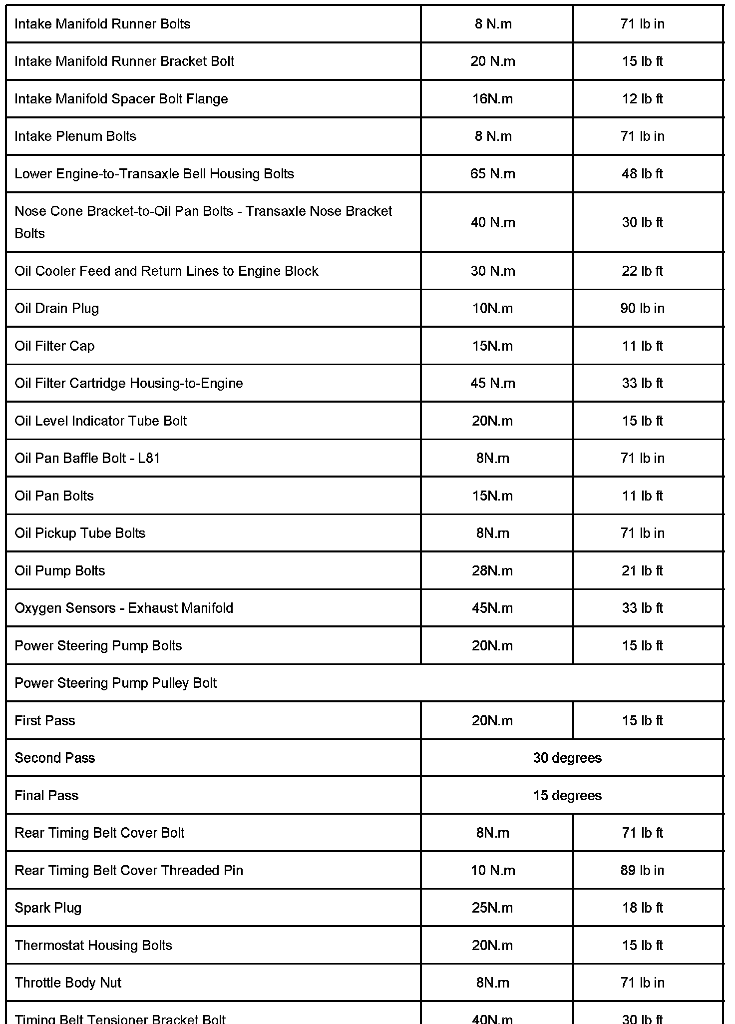 The purpose of this bulletin is to provide updated torque and clearance specifications for all 2000 - 2004 L-Series and 2002 - 2003 VUE Engine Service Manuals at your location.