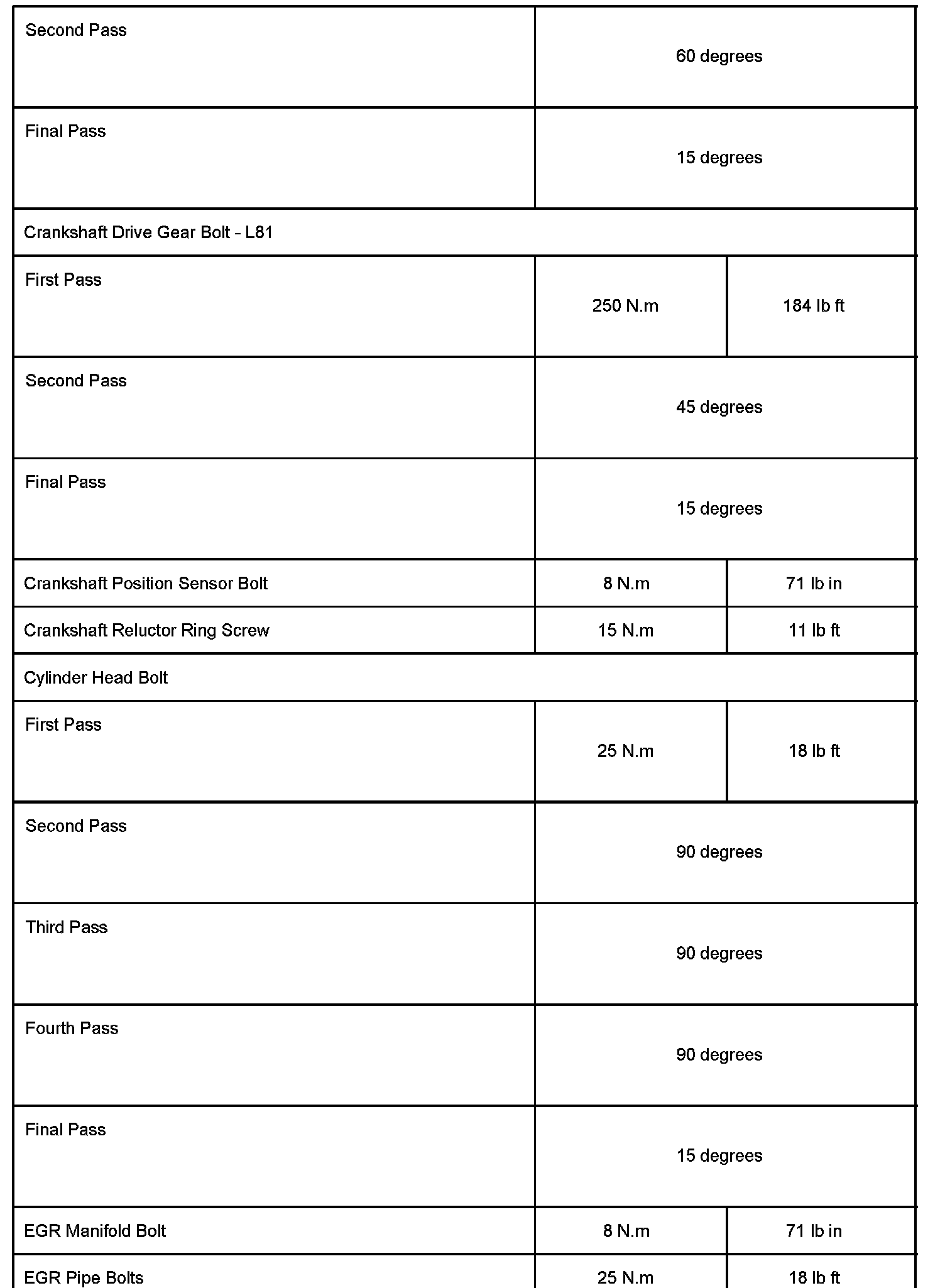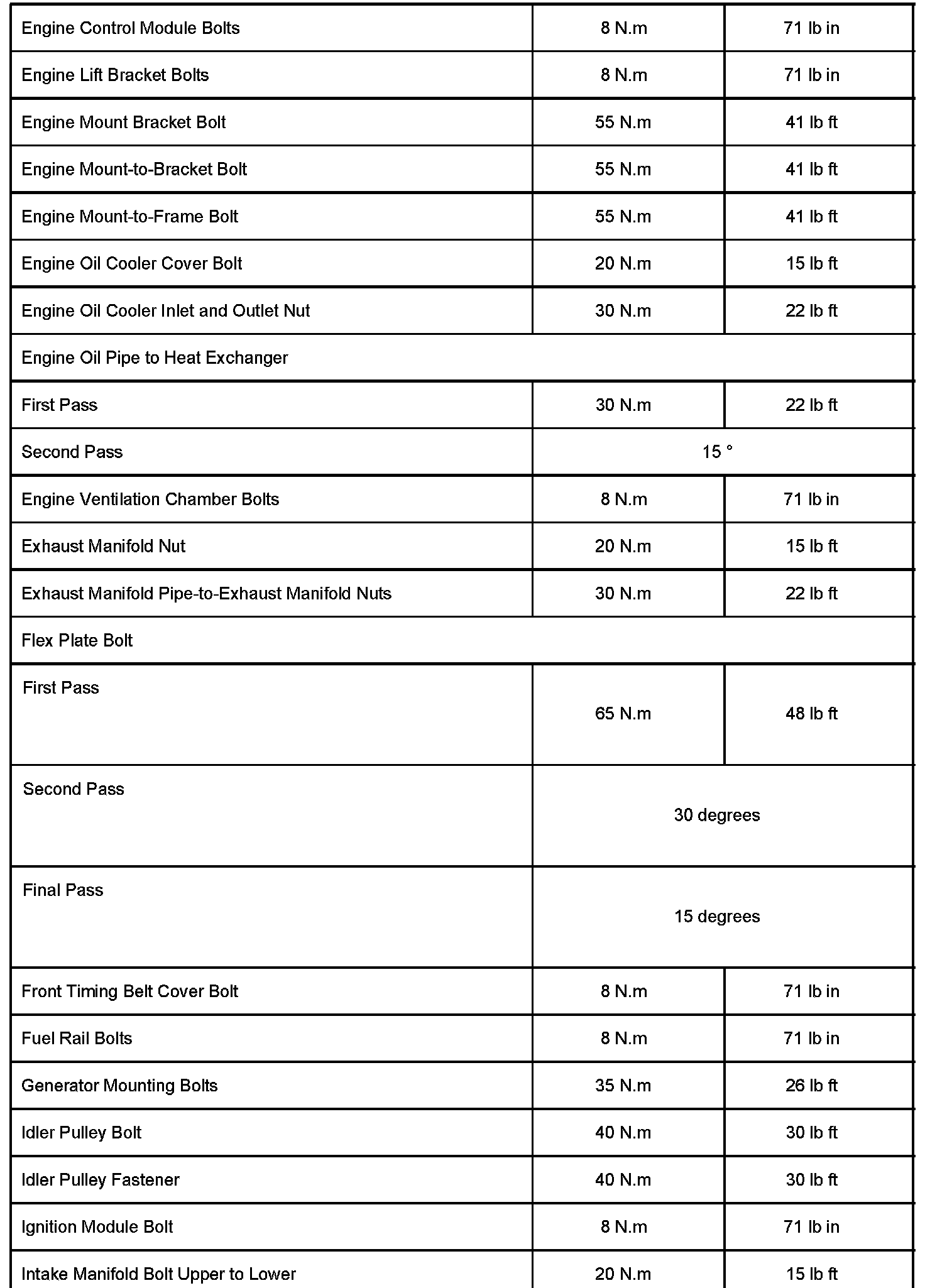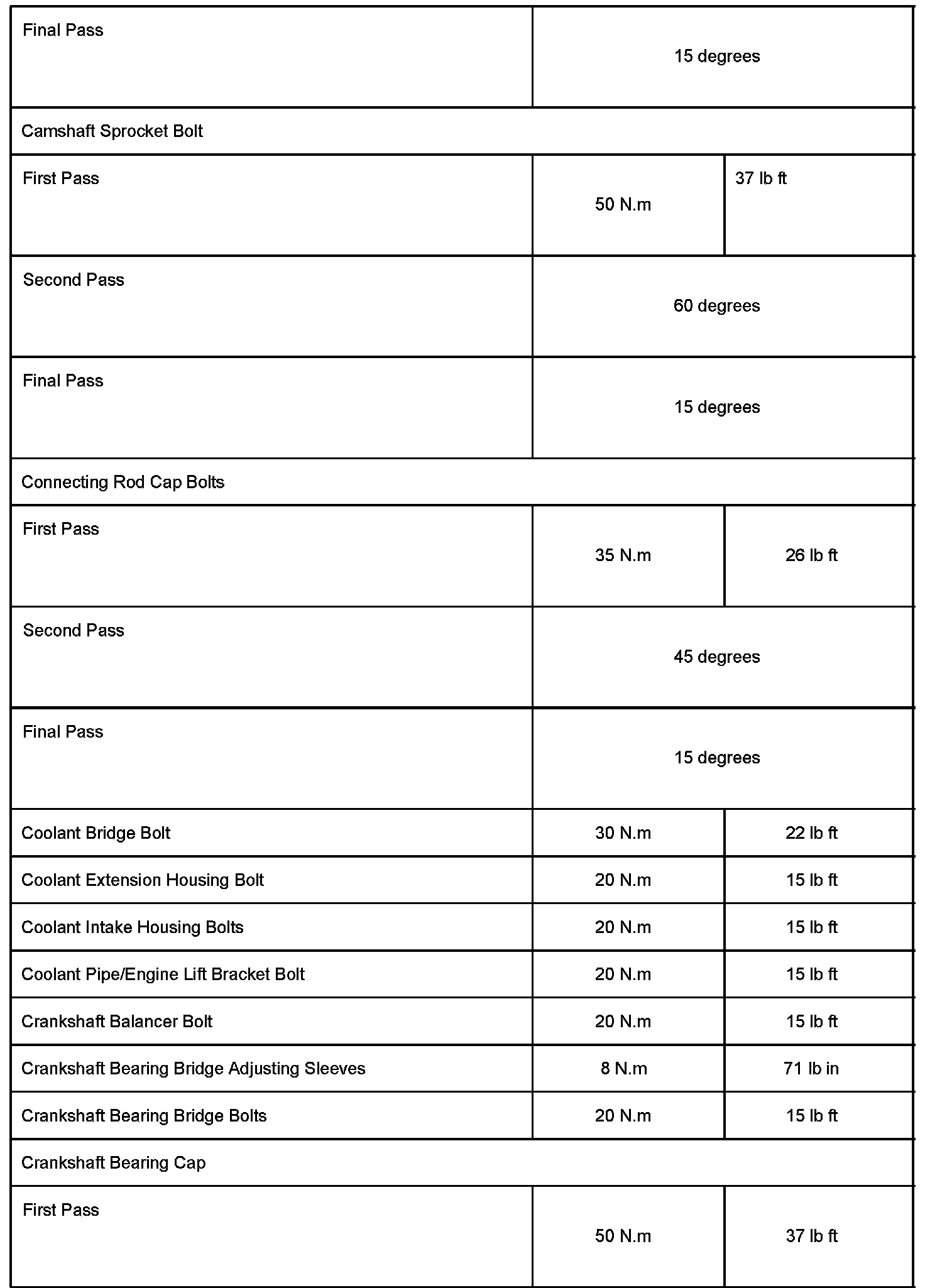 Engine - Torque/Clearance Specifications Revisions