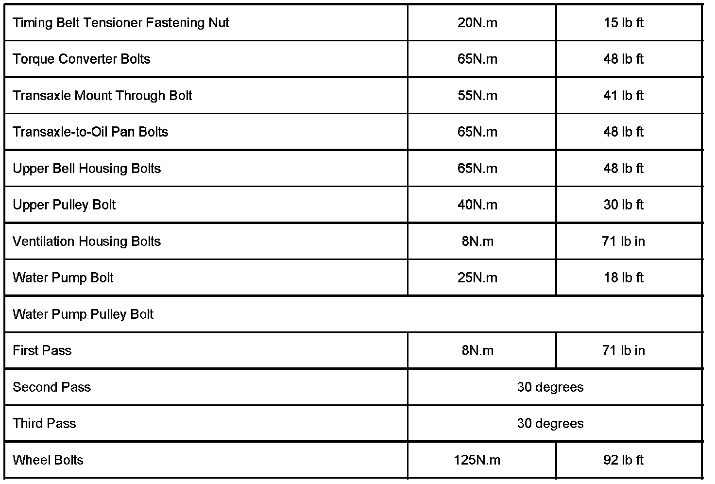 Fastener Torque Specifications
